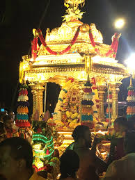 Thaipusam, a Hindu festival is celebrated by Hindus in the month of Thai (around January or February).  The eve of Thaipusam is a special occasion in Penang.  Practically all of the island is involved in the festival.  The silver chariot leaves early in the morning from Queen Street and travels along Chulia Street, Carnavon Street, Magazine Road, Dato Kramat Road, Polo ground and arrives at the Waterfall temple in the evening.  Thousands of coconuts are crashed as this silver chariot carrying Lord Subramaniam passes each booth/stall along the way. Moru (light yogurt with salt, curry leaves, green chilies and fried onions)  cold syrup and orange drinks are served to everyone who stops by at these booths.  Tamarind rice with chick peas, or pooli sor,  sweet ponggal rice and meehoon is packed and given away too. At some booths, vegetarian meals are served to anyone who steps in.   Who did these booths belong to, you may ask?  Well, factory workers’ union, corporate bodies, companies and individuals rent these space for the booths from the City Council.  These booths are decora with lights, the borders of the booth are fenced with leaves.  At the entrance of these booths, there would be a banana tree or two with young bananas still hanging on it.  This is a sign of welcome and if you see during any Hindu wedding or temple celebrations, there is surely the banana tree tied to the sides of the entrance. Inside the booth, long tables with benches will be set for people to sit while enjoying the meal.  Plastic cups with the cold drinks would be served with the meal.  It was really a nice feeling to get to sit and eat with people from all walks of life no matter what caste or religion you may belong to. It taught us humility. The weather in January and February in Malaysia is relatively hot so the devotees following the chariot feel the heat as they walk bare footed but the ground is kept cool by sprinklers from City Council water lorries, My papa would cycle and pay his respects around 11 am when the chariot reached the intersection of Brick Kiln Road and Dato Kramat Road.  He would bring home half a coconut which was filled with 2 bananas, betel leaf, betel nut and a little packet of bhiputi (ash from the pooja).  That was his way of appreciating other religions although he was strong in his own faith.